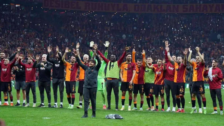 Galatasaray'da futbolcular ve teknik ekip, Beşiktaş derbisi sonrasında taraftarların yanına giderek galibiyeti beraber kutladı.