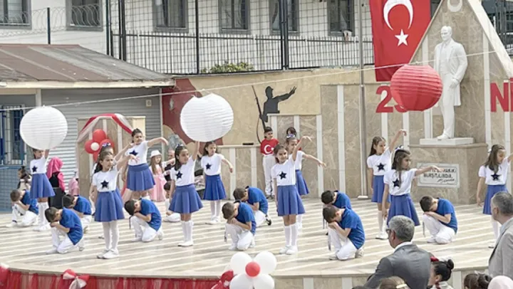 Öğrenciler, öğretmenleri rehberliğinde hazırladıkları dans gösterileri ve şiirlerle sahne aldı. Birbirinden özel kostümleriyle izleyenlerin beğenisini toplayan minikler, milli egemenliğin ilan edildiği ve kendilerine bayram olarak hediye edilen bu özel gün dolayısıyla Atatürk'e duydukları sevgi ve minnetle kutladı.