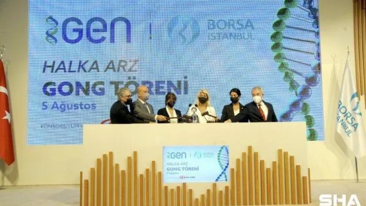 Borsa İstanbul'da düzenlenen programda konuşan Borsa İstanbul Genel Müdürü Korkmaz Ergün, ''Gen İlaç kalifiyeli ürün ve kaliteli hizmet anlayışıyla ilaç sektörüne hepimize gurur veriyor. Salgın döneminde sağlık sektörünün stratejik bir öneme sahip olduğu anlaşıldı. Gen İlaç yaklaşık 738 milyon lira ve 49 bin yatırımcıya yaptığı satış ile çok başarılı bir halka arz gerçekleştirdi. Doğru zamanda, doğru şirketi, doğru fiyatlamayla halka arz ettiğinizde yerli ve yabancı kurumsal yatırımcılar yüksek ilgi gösterebiliyor. Bu yüksek ilgi ülkemize, ekonomimize ve sermaye piyasalarımıza önemli katkılar sağlıyor'' dedi.Gen İlaç'ın halka arzının tarihi bir gün olduğunu söyleyerek sözlerine başlayan Gen İlaç Yönetim Kurulu Başkanı Abidin Gülmüş ise ''23 yıldır özveriyle çalışmalarımızın sonucunda başarılı bir halka arz gerçekleştirdik. Halka arzımızda yabancı yatırımcıların yoğun ilgisiyle karşılaştık. Sağlık sektörü çok önemli bir sektör. Biz Türkiye'de bugüne kadar yapılmayan işleri yapmaya çalışıyoruz. Şuanda üzerinde çalıştığımız ön klinik çalışmalarından başlayarak faz 1, faz 2, faz 3'ü Türkiye ve uluslararası çok merkezli klinik çalışmalar ile ispatlanacak birkaç molekül üzerinde çalışmaktayız. Bu moleküllerin ham maddelerini de Türkiye'de yapmak için çalışıyoruz. Önümüzdeki üç yıl içinde Ankara'daki üretim tesisimizde ürettiğimiz ilaçların yüzde 70'ini ihraç etmek istiyoruz. Bu hedeflerimizi gerçekleştirmek için alt yapı çalışmalarımızı tamamladık ve çalışmalarımızı sürdürüyoruz. Halka arzda elde ettiğimiz gelir ile yatırımlarımızı büyüme odaklı sürdüreceğiz'' diye konuştu.