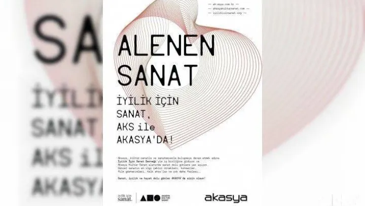 İyilik İçin Sanat Derneği ve Akasya Kültür Sanat iş birliği ile hayata geçirilen Alenen Sanat projesi ile genç sanatçıların eserleri sanatseverlerle buluşturulacak. Her sanat dalının değerlendirildiği multidisipliner bir platform olan projede, prova ve atölye imkanının yanı sıra sanatçılara eserlerini sergileme alanı ve performanslarını gerçekleştirme olanağı sunulacak.