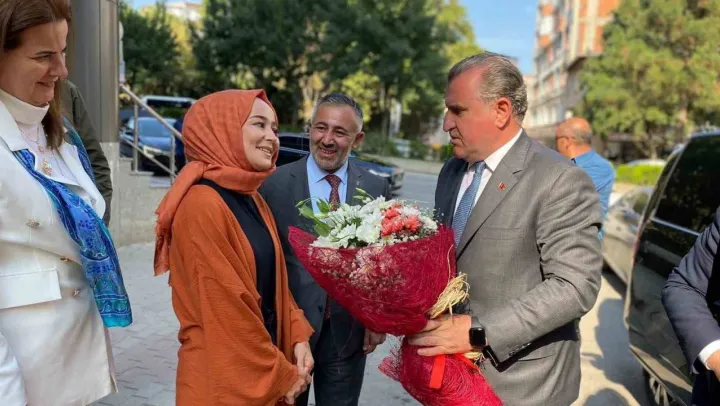 Ardından İl Başkanı Serkan Yıldırım, Gençlik ve Spor Bakanı Osman Aşkın Bak'a günün anlam ve önemine binaen hediyeleri takdim etti.