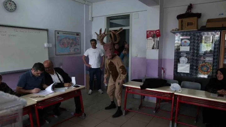 Geyik kostümüyle oy kullanmaya gelince herkes şaşkına döndü