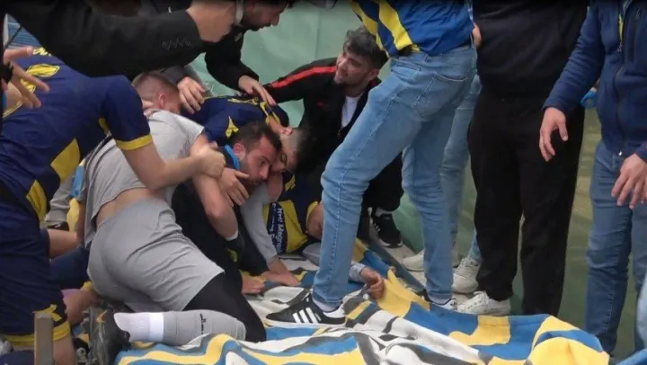 Gol sonrası güvenlik bariyerlerini devrilmesi sonucu futbolcu ve taraftarlar ölümden döndü