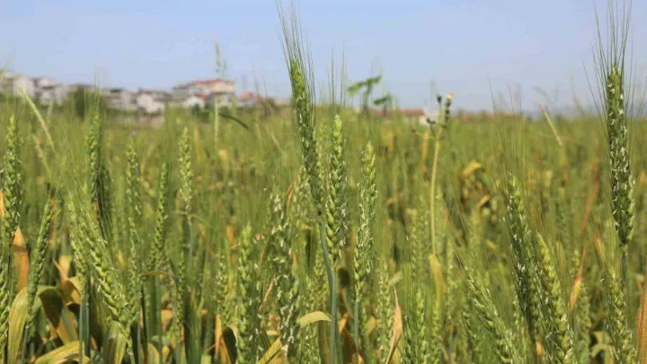 Gölcük Belediyesi'nin sosyal faaliyetlerde kullanmak amacıyla 38 dönümlük alana ektiği buğdaylar gelişimlerini sürdürüyor.