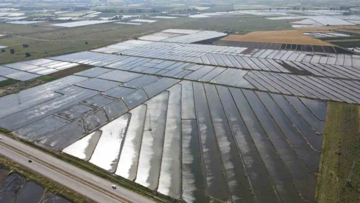 Balıkesir'de 155 bin dekar alanda birinci sınıf çeltik tarımının yapıldığı Gönen ve Manyas ilçelerinde çeltiklerin ekimine başlandı. Ekimin yapıldığı binlerce dönümlük alanlar dron ile görüntülendi.