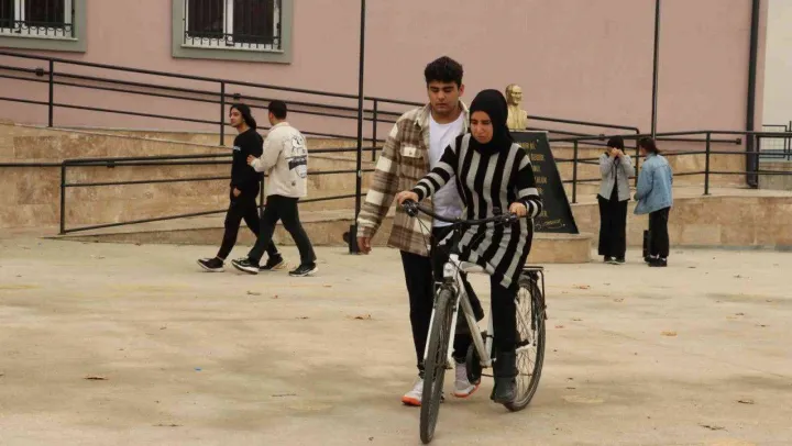 Öğretmenine yardımcı olan öğrencilerden Ramazan Baksi, 'Öğretmenimiz büyük bir bisikleti kullanmak istedi, bende yardım ettim, birlikte bisiklet sürdük. Düşebilir diye birazcık korktum aslında ama hocamıza bu duyguyu tattırdık' ifadelerini kullandı.