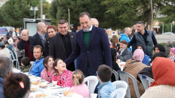 İftar programlarında vatandaşlara hitap eden Belediye Başkanı Volkan Yılmaz, “Ramazan yardımlaşma ve dayanışma ayıdır. Birlik ve beraberliğin kuvvetlendiği müstesna bir zaman dilimidir. Gönül sofralarında sizlerle bir arada olmaktan, aynı sofrada oruç açmaktan büyük bir mutluluk duyuyorum. Çünkü bu sofralar sizin. Bu sofralarda bir oluyoruz, beraber oluyoruz. Buna vesile olurken de belediyemizin kasasından tek kuruş harcamadan, hayırseverlerimizin destekleriyle yerine getiriyoruz. Allah yapılan yardımları kabul etsin.” mesajları veriyor.