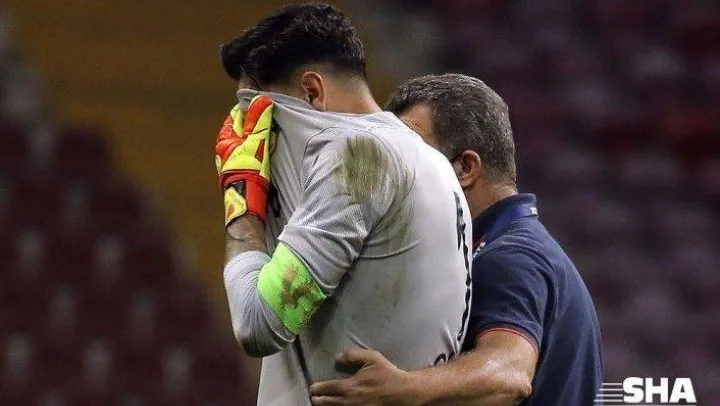 Galatasaray karşısında ilk yarıda kalesinde 3 gol gören Gaziantep FK file bekçisi Günay Güvenç, soyunma odasına giderken gözyaşlarını tutamadı.