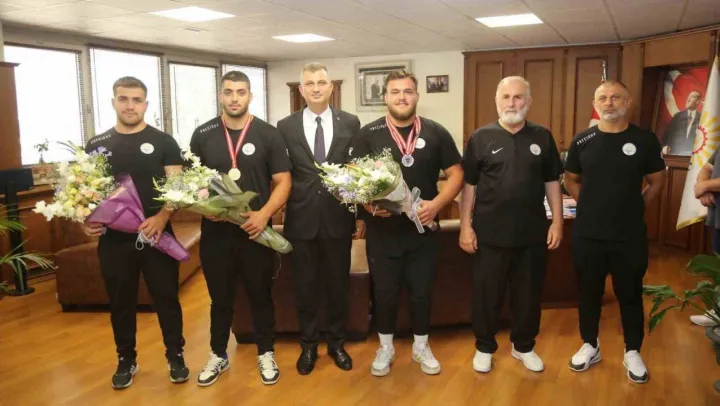 Edirne'de düzenlenen 662. Tarihi Kırkpınar Yağlı Güreşleri'nde büyük başarıya imza atarak baş atlayan Gölcük Belediyespor pehlivanları, Belediye Başkanı Ali Yıldırım'ı ziyaret etti.