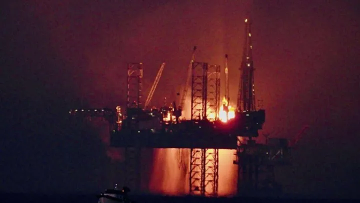 Sesi ile endişe yaratan doğalgaz platformunun görüntüsü ressam-fotoğrafçı Ömer Faruk Küçükkaya'nın objektifinden yansıdı