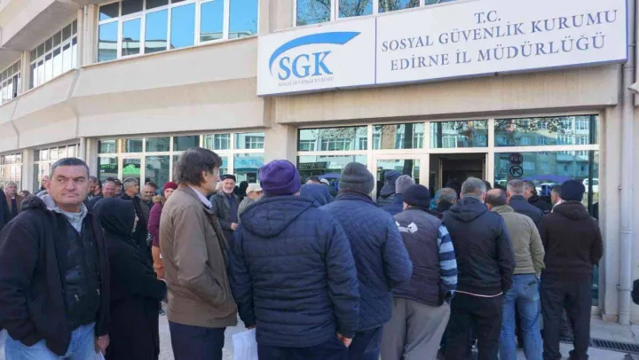 Edirne'de EYT düzenlemesinden faydalanarak emeklilik hakkını kullanmak isteyen vatandaşlar, prim günlerini hesaplatmak, askerlik ve doğum borçlanması için Sosyal Güvenlik Kurumu (SGK) binasının önünde yoğunluk oluşturdu.