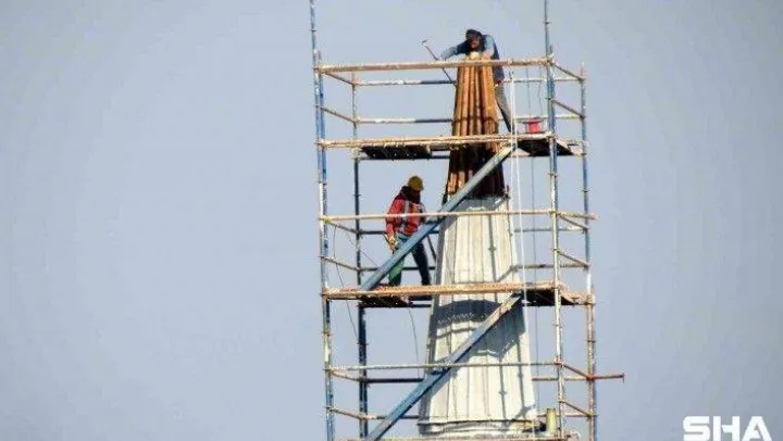 Hacıbaba Camii'nin hasarlı minaresi yıkılıyor
