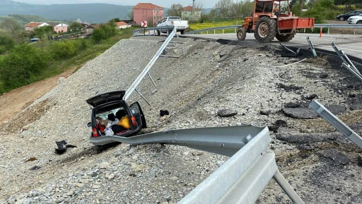 Hafif ticari aracın şarampole uçmasını demir bariyer önledi: 1 yaralı