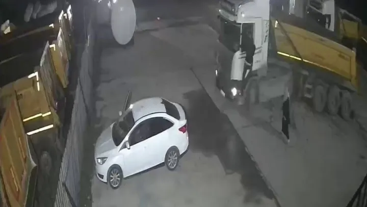 İstanbul'da gece meydana gelen olayda Sancaktepe Paşaköy tır garajından babasına ait hafriyat kamyonunu çalarak dehşet saçan 22 yaşındaki S.A'nın yeni görüntüleri ortaya çıktı. Dün gece yaşanan olayın ilk anlarında tır garajında bulunan bir güvenlik kamerasına yansıyan görüntülerde babasına ait hafriyat kamyonunu çalmaya çalışan S.A'nın kendisine engel olmak isteyen babası İ.H.A'yı darp ederek aracı anne ve babasının üzerine sürdüğü görüldü. Yaşanan bu dehşet anlarında uyuşturucunun etkisinde olduğu iddia edilen S.A, Sancaktepe'de bulunan tır garajından çalmaya çalıştığı hafriyat kamyonuyla kendisine engel olmaya çalışan anne ve babasını defalarca ezmeye çalıştı. Kamyonla ileri-geri manevralar yapan S.A, babasının kamyonun kapısına tutunmasına aldırış etmeden aracıyla kaçmaya çalıştı. yaşanan o dehşet anları güvenlik kamerasına saniye saniye yansıdı.