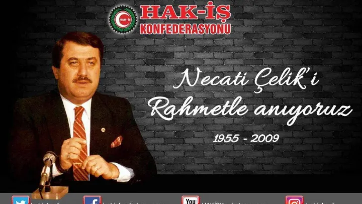 HAK-İŞ Genel Başkanı Mahmut Arslan, 'Merhum Genel Başkanımız Necati Çelik'i vefatının 14'üncü yılında rahmetle anıyoruz. Merhum başkanımızın bizlere verdiği mesajları yarınlara taşımayı ve hatırasını yaşatmayı görev addediyor, kendisine bir kez daha yüce Allah'tan rahmet, yakınlarına başsağlığı diliyoruz' dedi.