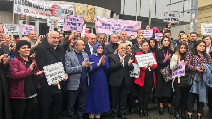 Hak İşçi Sendikaları Konfederasyonu (HAK-İŞ) Genel Başkanı Arslan, HAK-İŞ Genel Merkezinde '25 Kasım Kadına Yönelik Şiddete Karşı Uluslararası Mücadele Günü' çerçevesinde basın açıklamasında bulundu. Basın açıklamasına Arslan'ın yanı sıra HAK-İŞ Kadın Komite Başkanı Fatma Zengin ve HAK-İŞ Kadın Komite üyeleri katıldı.