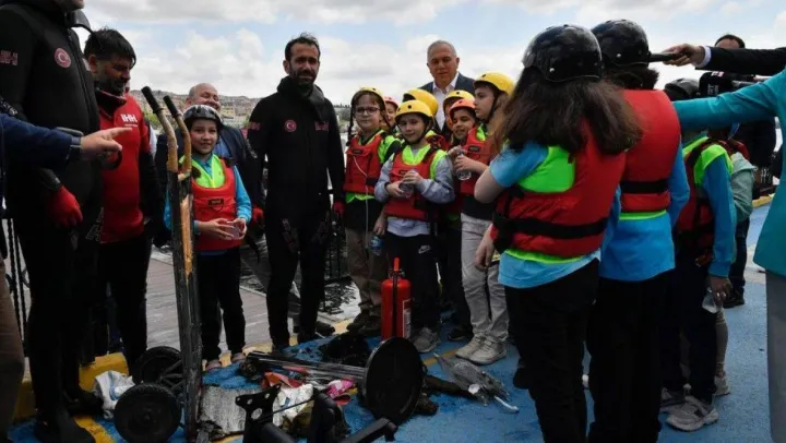 Fatih Belediye Başkanı M. Ergün Turan, 'Bugün 5 Haziran Dünya Çevre Günü vesilesiyle farkındalık oluşturmak amacıyla burada beraber bir deniz temizliği yaptık. Amacımız tabi ki bu farkındalığın oluşması şimdi burada 10-15 dakikalık dalışta bile denizi kirleten çoğu materyal çıkardık. Amacımız bu farkındalığın bu yaşlardan başlayarak topluma mal olması. Buradan sonra yine çevre bilinci oluşması ile alakalı bir faaliyetimiz var. Ben bugün Haliç kenarında bu mesajı vermeyi kıymetli buluyorum. İnşallah yavrularımız, çevre konusunda gelecek nesiller daha şurlu olacaktır ve bütün toplumu çevre konusunda duyarlı olmalarını davet ediyorum' dedi.