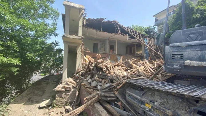Kocaeli Büyükşehir Belediyesi, kent genelinde hasarlı ve metruk binaların yıkım işlemlerine devam ediyor. Yıkılan binaların enkazları eş zamanlı olarak kaldırılıyor.