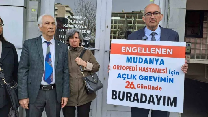 Turan Turan Yönetim Kurulu Başkanı Dr. Kayahan Turan, Mudanya'da açılmak istenen ortopedi hastanesinin bürokrasi engeline takılmasına tepki olarak başlattığı açlık grevine 26. gününde de devam ediyor. Dr. Kayahan Turan, AK Parti ve CHP Bursa İl Başkanlıkları önünde hastane açılışı ile ilgili siyaset cephesinden destek istedi.