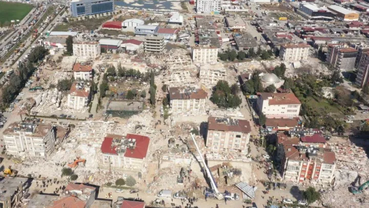 Türkiye'yi derinden sarsan Kahramanmaraş merkezli depremlerden en çok etkilenen illerden Hatay'da arama kurtarma çalışmaları sürerken, depremin 7. gününde ortaya çıkan yıkım dron ile havadan görüntülendi. Hatay'da çekilen dron görüntülerine, insanların ve ekiplerin enkaz çevresindeki kurtarma çalışmaları ve oluşan yoğunluk yansıdı.