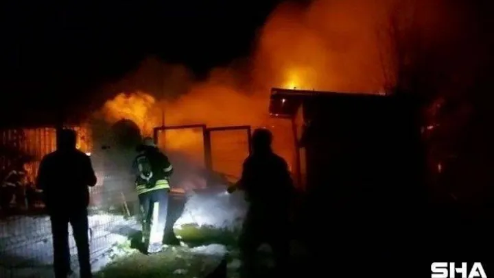 Kocaeli'nin Gebze içerisinde hayvanların bulunduğu ahır alev alev yandı.