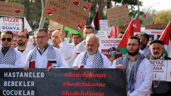 Hekimler gerçekleştirdikleri 'sessiz yürüyüş' ile İsrail'i kınadı