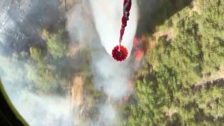Rüzgarın durmasıyla birlikte alevlerin ilerleyişi yavaşladı ancak bu kez de yoğun duman çalışmaları zorlaştırdı. Görüş açısının ciddi oranda düşmesi, özellikle hava araçlarının manevrasını zorlaştırıyor. Yangın söndürme helikopterinden kaydedilen görüntüler, hem alevlerin yayılma hızını hem de müdahalenin ne denli zorlu şartlarda yapıldığını gözler önüne serdi. Havadan çekilen görüntülerde, arazinin büyük kısmı neredeyse görünmez hale gelirken, gökyüzünden bırakılan tonlarca suyun duman bulutlarını yararak alevlerin üzerine döküldüğü görülüyor.