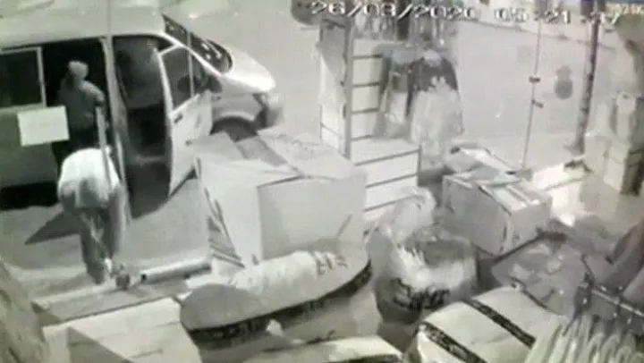 Güvenlik kameralarına yansıyan görüntülerde bir minibüs ile iş yerinin önüne gelen zanlılar, bir süre sonra araçtan inip çocuk giyim mağazasının kapısını demir levye ile açıyor. Girdikleri iş yerinden eşya çalmaya çalıştığı sırada bekçilerin devreye girmesiyle hırsızlık teşebbüste kalıyor. Şüpheliler, daha sonra geldikleri minibüse binerek olay yerinden hızla uzaklaşıyor.
