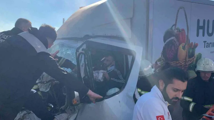 Hurdaya dönen kamyonette sıkışan şoförü itfaiye kurtardı