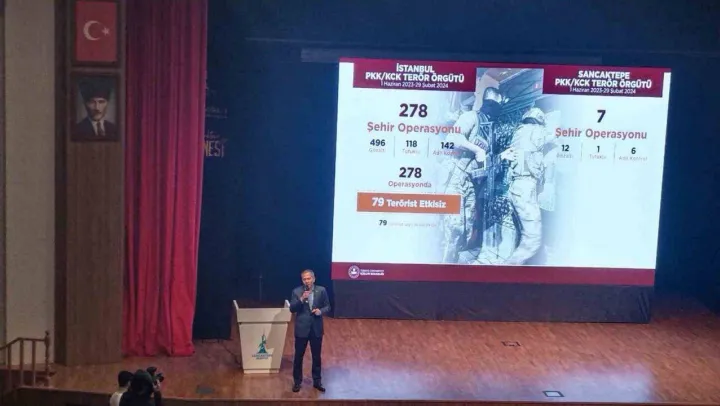 İstanbul'da yaptıkları operasyonlarla ilgili bilgi veren Bakan Yerlikaya, İstanbul'da 278 şehir operasyonu yaptıklarını, 79 teröristin sağ olarak yakalanıp adalete teslim edildiğini belirtti. Sancaktepe'de FETÖ'ye 151, DEAŞ terör örgütüne 101 operasyon yapıldığını açıklayan Bakan Yerlikaya, Türkiye'de 128, İstanbul'da 8 terör eyleminin önlendiğini ayrıca yapılan operasyonlarla çeşitli organize suç şebekelerinin çökertildiğini belirtti.