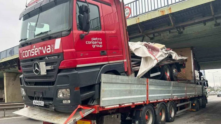 Tuzla İçmeler Köprüsü'nde tır yüklü olan tır, köprünün altından geçtiği sırada sıkıştı. Kaza nedeniyle oluşan trafik, dron ile görüntülendi.