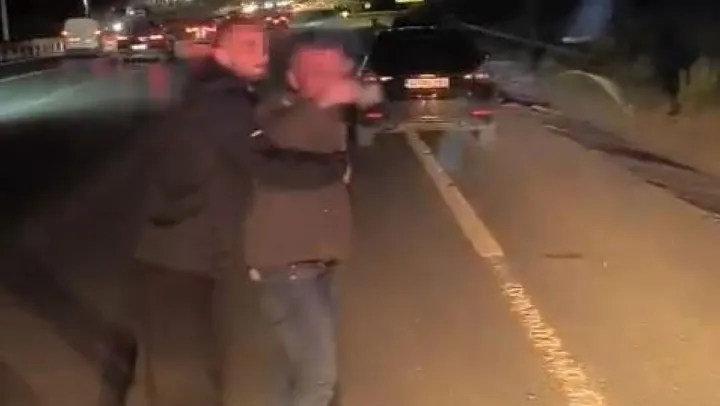 İstanbul'da yol tartışması nedeniyle otobüsün önünü keserek şoföre tehditler savuran 2 maganda cep telefonu kamerasıyla görüntülendi.