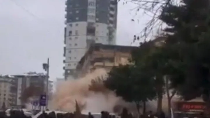 Kahramanmaraş Pazarcık merkezli 7.7'lik depremde ciddi hasar alan Gaziantep'in Şehitkamil ilçesi Batıkent Mahallesi'ndeki bir bina, Elbistan merkezli 7.6 büyüklüğünde ikinci depremde yerle bir oldu. Binanın büyük bir gürültüyle yıkılma ve yaşanan panik anları ise cep telefonu kamerasına yansıdı.