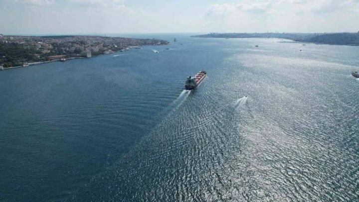 Ukrayna'nın Odessa Limanı'ndan hareket eden 27 bin ton mısır yüklü Razoni adlı gemi, dün akşam saatlerinde İstanbul'da Karadeniz açıklarına ulaşmış ve kendisine tahsis edilen alana demirlemişti. Sabah saat 10.00 sıralarında ise Türkiye, Rusya, Ukrayna ve Birleşmiş Milletler'den oluşan 20 kişilik heyet, inceleme yapmak üzere Sarıyer Kıyı Emniyet Genel Müdürlüğü Limanı'ndan yola çıkarak gemiye ulaşmıştı. Heyet yaklaşık 2 saat süren denetiminin ardından gemiden ayrılmıştı. Sarıyer açıklarında kendine ayrılan bölgede bekleyen Razoni adlı gemi, İstanbul Boğazı'ndan geçmek üzere yola çıkmıştı. 27 bin ton mısır taşıyan Razoni adlı ilk tahıl gemisi İstanbul Boğazı'ndan geçerek Çanakkale Boğazı'na doğru yol almaya devam ediyor. Geminin İstanbul Boğazı'ndan geçişi dron ile görüntülendi.