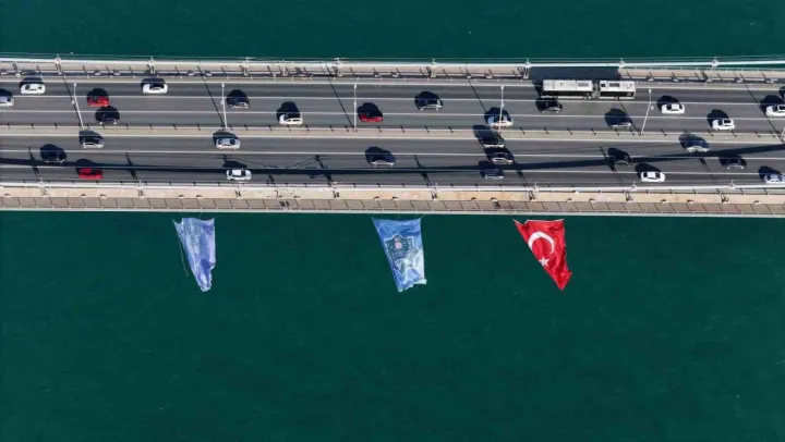 Ay yıldızlı bayrağımızı uzaya taşıyan ilk Türk astronot Alper Gezeravcı için 15 Temmuz şehitler köprüsüne Türk bayrağı ve misyonda kullandığı görev armasının flamaları asıldı.