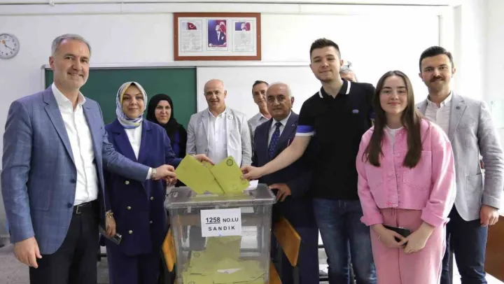 İnegöl Belediye Başkanı Alper Taban, Cumhurbaşkanlığı ikinci tur seçiminde oyunu Yunus Emre Mesleki ve Teknik Anadolu Lisesinde ailesi ile birlikte kullandı.