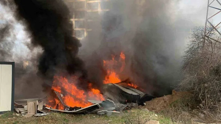 İşçilerin kaldığı 32 yataklı konteyner ev alev alev yandı