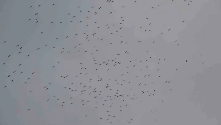 İstanbul'a gelen leylek sürüsü Taksim Meydanı semalarında görsel şölen oluşturdu