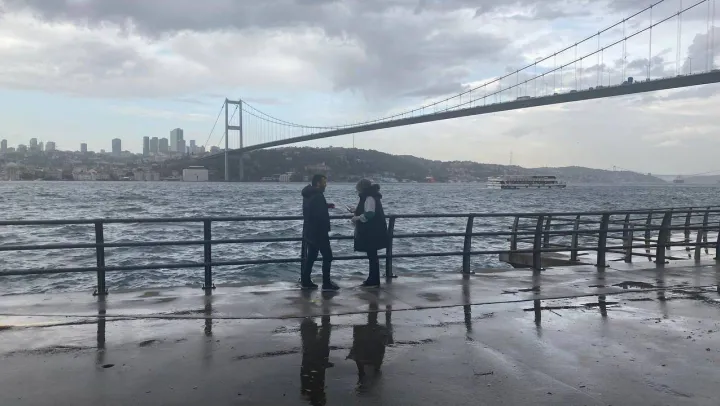 İstanbul'da şiddetli rüzgar etkili olmaya başladı. Üsküdar Kuzguncuk Sahili'nde dalgalar kıyıya çarparak metrelerce yükseldi.