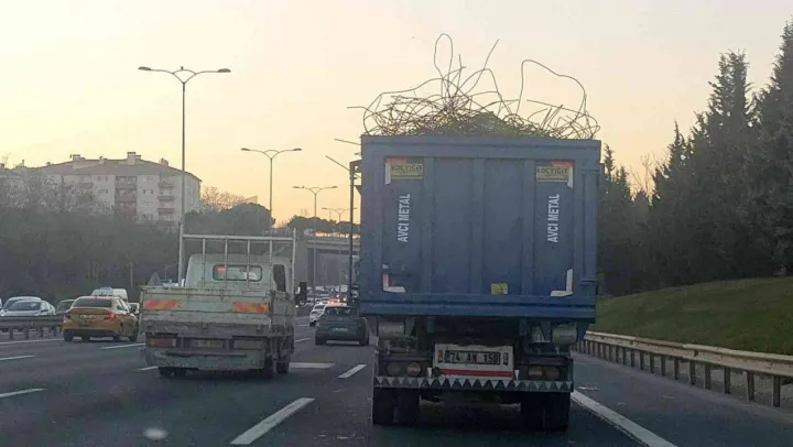 Olay geçtiğimiz günlerde İstanbul Seyrantepe'de yaşandı. Kasasından taşan demir yığınıyla Tem Otoyolu Edirne istikametinde seyir halinde olan bir kamyon adeta faciaya davetiye çıkardı. Rüzgardan sallanan demirin önlem alınmadan taşınması görenleri hayrete düşürdü. O anlar ise bir vatandaşın cep telefonu kamerasına böyle yansıdı.