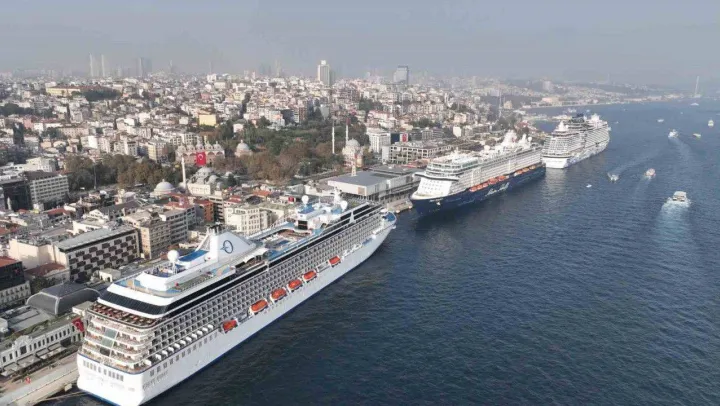 İstanbul'a gelen dev kruvaziyer gemileri Galataport ve Sarayburnu limanına yanaşarak yoğunluk oluşturdu. Havadan çekilen görüntülerde 4 dev geminin bazı binalardan daha yüksek olması ilginç manzaralar oluşturdu.