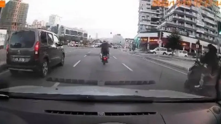 Kağıthane'de bir motosiklet sürücüsü, kırmızı ışıkta durduğu esnada aracının arka plakasını sökerek yoluna tek tekerlek üzerinde devam etti. İddiaya göre ceza yememek için bu yöntemi uygulayan sürücüyü, trafikte bulunan başka bir aracın kamerası anbean kaydetti.
