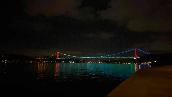 İstanbul'da köprüler Azerbaycan bayrağının renkleriyle ışıklandırıldı
