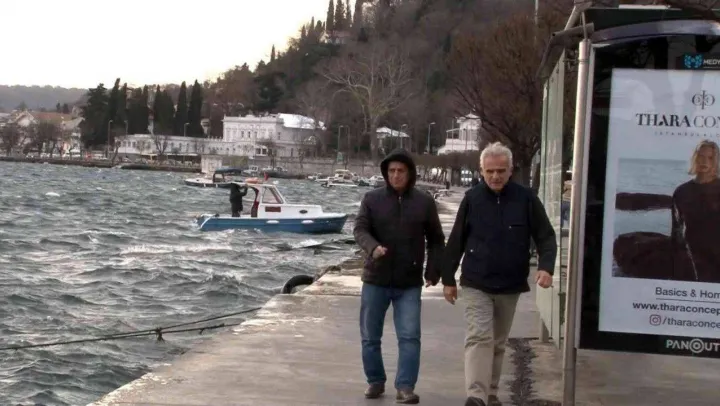 İstanbul'un Sarıyer ilçesinde etkili olan lodos nedeniyle vatandaşlar sahilde yürümekte güçlük çekti.