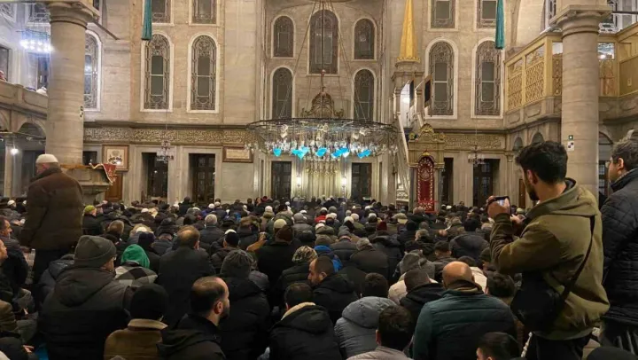 Diyanet İşleri Başkanı Ali Erbaş'ın çağrısı üzerine vatandaşlar Eyüpsultan Cami'sine akın etti. İçeride yer bulamayan vatandaşlar soğuk havaya rağmen avluya serilen kilimlerin üzerinde namaz kıldı.