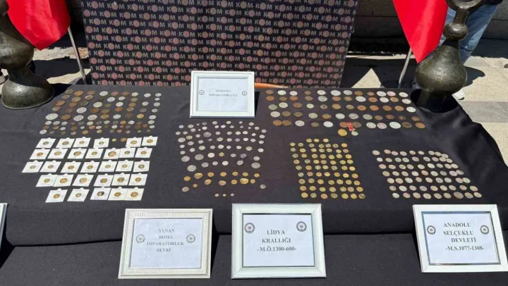 Baskın yapılan adreslerdeki aramalarda, Lidyalılara ait olduğu değerlendirilen ve M.Ö. 7'nci yüzyıla tarihlenen sikkelerin de içinde yer aldığı, Roma, Bizans, Abbasi, Osmanlı ve Anadolu Selçuklu dönemlerine ait toplam bin 143 sikke ele geçirildi.