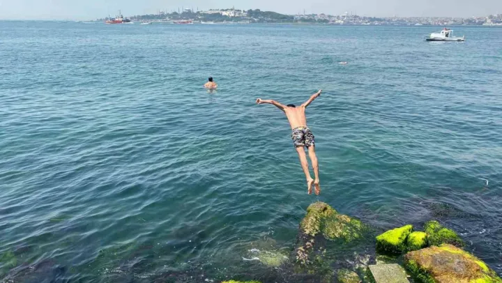 İstanbul'da termometreler 34 dereceyi gördü, vatandaşlar Üsküdar'da denize girdi