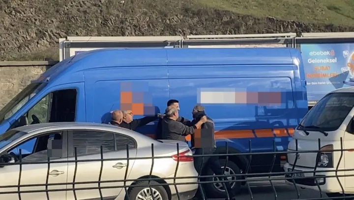 Kağıthane'de kargo aracı şoförü ile otomobil sürücüsü arasında trafik yol verme nedeniyle kavga çıktı. Yol ortasında duran sürücüler birbirine yumruk atarak saldırdı. Yaşananlar hem güvenlik hem de cep telefonu kamerasına yansıdı.