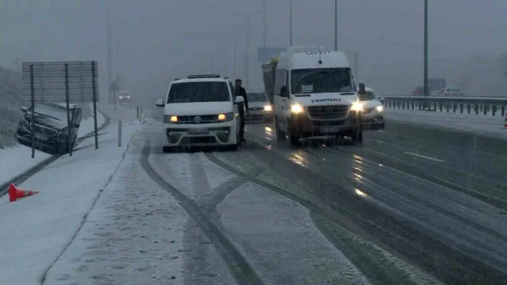 İstanbul Havalimanı yolunda yoğun kar yağışı başladı. Yağış nedeniyle yolda birçok aracı kaza yaptığı görüldü.