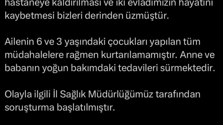 İstanbul İl Sağlık Müdürü Güner: 'Ailenin 3 ve 6 yaşlarındaki çocukları yapılan tüm müdahalelere rağmen kurtarılamamıştır'